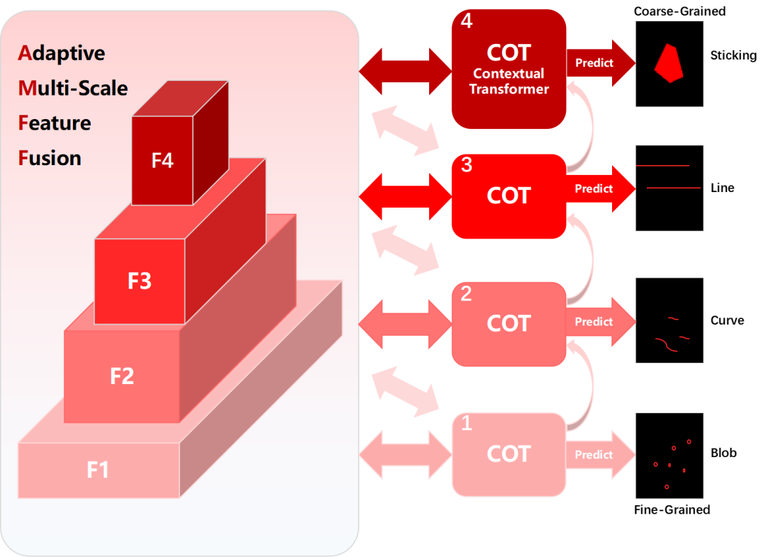 帆声科技荣耀入选第二届 “金桥工匠” 培育对象候选人欣闻第二届 “金桥工匠” 培育活动 30 名候选人公示,帆声科技有幸入选,这既是对帆声科技在工匠人才培育、创新创造实践中所做努力的肯定,更是对公司深耕专业领域、践行工匠精神的激励。 作为以深化工匠人才培养、激发职工创新活力为目标的重要活动,第二届 “金桥工匠” 培育活动自今年 3 月由金桥管理局、金桥集团、金桥股份共同启动以来,历经广泛发动推荐、资格审定、专家初评等多环节严格筛选,其权威性与含金量不言而喻。帆声科技能够从众多参与者中脱颖而出,背后是团队对技术的执着钻研、对品质的极致追求,更是公司始终将工匠精神融入发展血脉的生动体现。 金桥开发区第二届“金桥工匠”培育对象候选人名单 ↓↓↓ ![]() 帆声科技AI算法团队提出的 FS-detector 算法,在 FOS 场景下显著提升了微弱缺陷的检出率。 ![]() 解决多尺度问题,确保模型能够同时关注全局和局部信息。 通过多阶段特征融合与预测,逐步细化检测结果,提高检测精度。 从F1到F4逐层提取更高层次的特征,然后从F4开始,通过CoT模块将高层特征与低层特征进行融合。每个CoT模块不仅输出预测结果,还通过反馈机制调整特征表示,进一步优化检测结果。 未来,帆声科技将以此次入选为契机,持续弘扬精益求精、守正创新的工匠精神,进一步打磨核心技术、培育专业人才,为区域高质量发展贡献更多 “帆声力量”。 ![]() 扫一扫关注我们 |